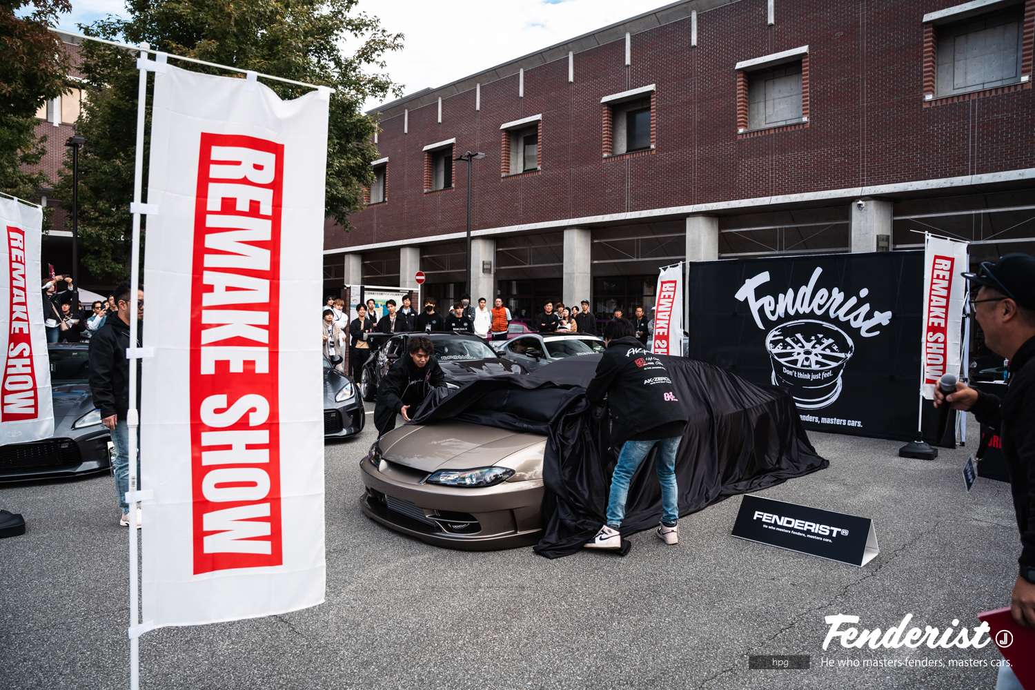 AK-PRODUCE 小林氏のS15シルビア。ストリート仕様なS15が鉄板溶接のフェンダーでフィットメントも美しいショーカーに進化。開催当日、ギャラリーに見守られながらアンベールする瞬間は多くの拍手が上がっていました。