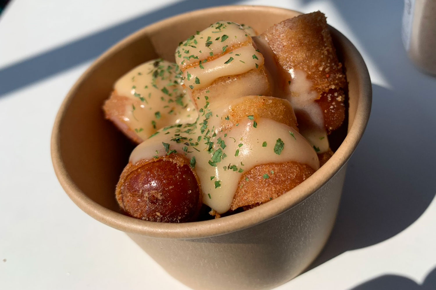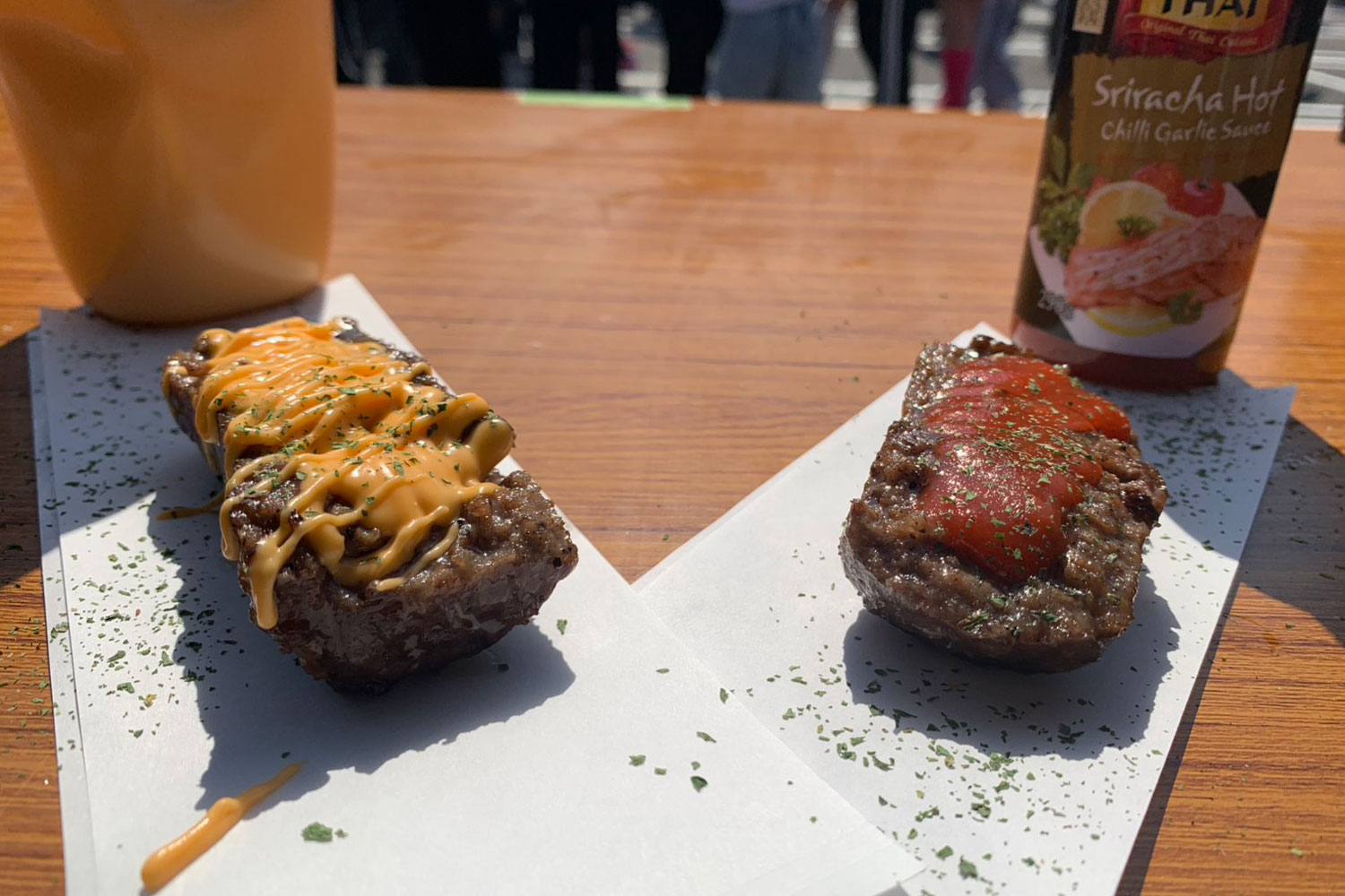 贅沢に100%牛肉を使用したロコモコ丼!こだわりにこだわった逸品をご用意しています。食べ歩きもしやすい100%牛ハンバーグ串や、ぱりっぱりに揚げたウィンナーも提供予定です!暑い時期なので冷えたドリンクも提供します!